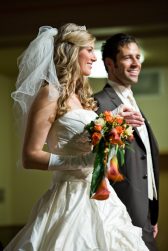 Aus fotografischer Sicht waren die Aufnahmen eine gelungene Herausforderung mit einem Mix von zu großer Raumhöhe für einen indirekten Blitz, zu schwachem Licht für niedrige ISO-Werte und zu starke Kontraste zwischen schwarzem Hintergrund und weißen Brautkleidern.